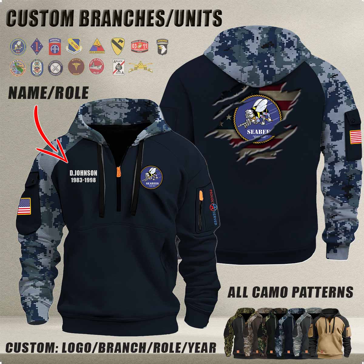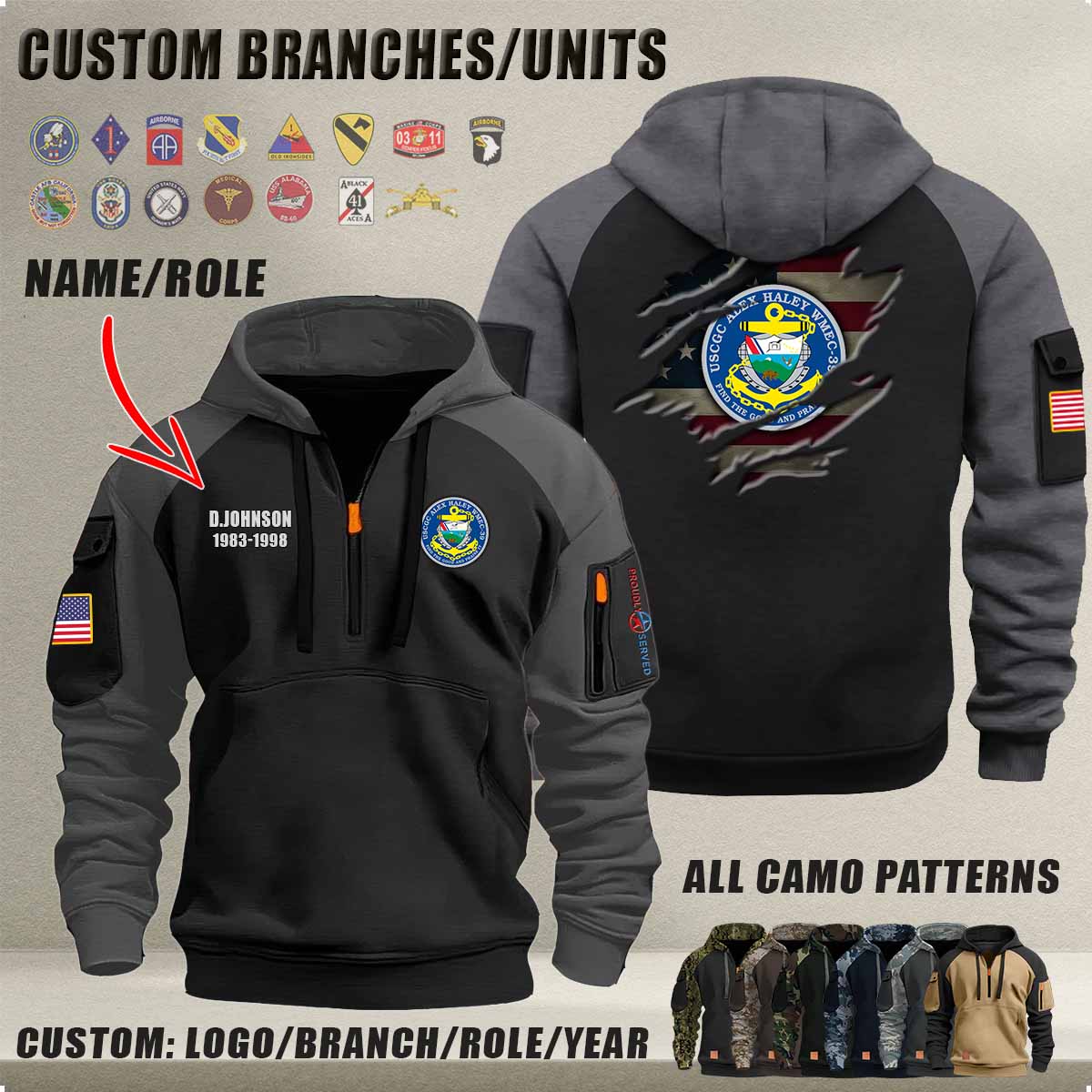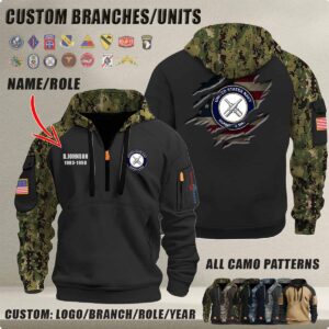 • This item: Personalized US Military Halfzip Hoodie-THK119013 Original price was: $69.99.Current price is: $54.99.