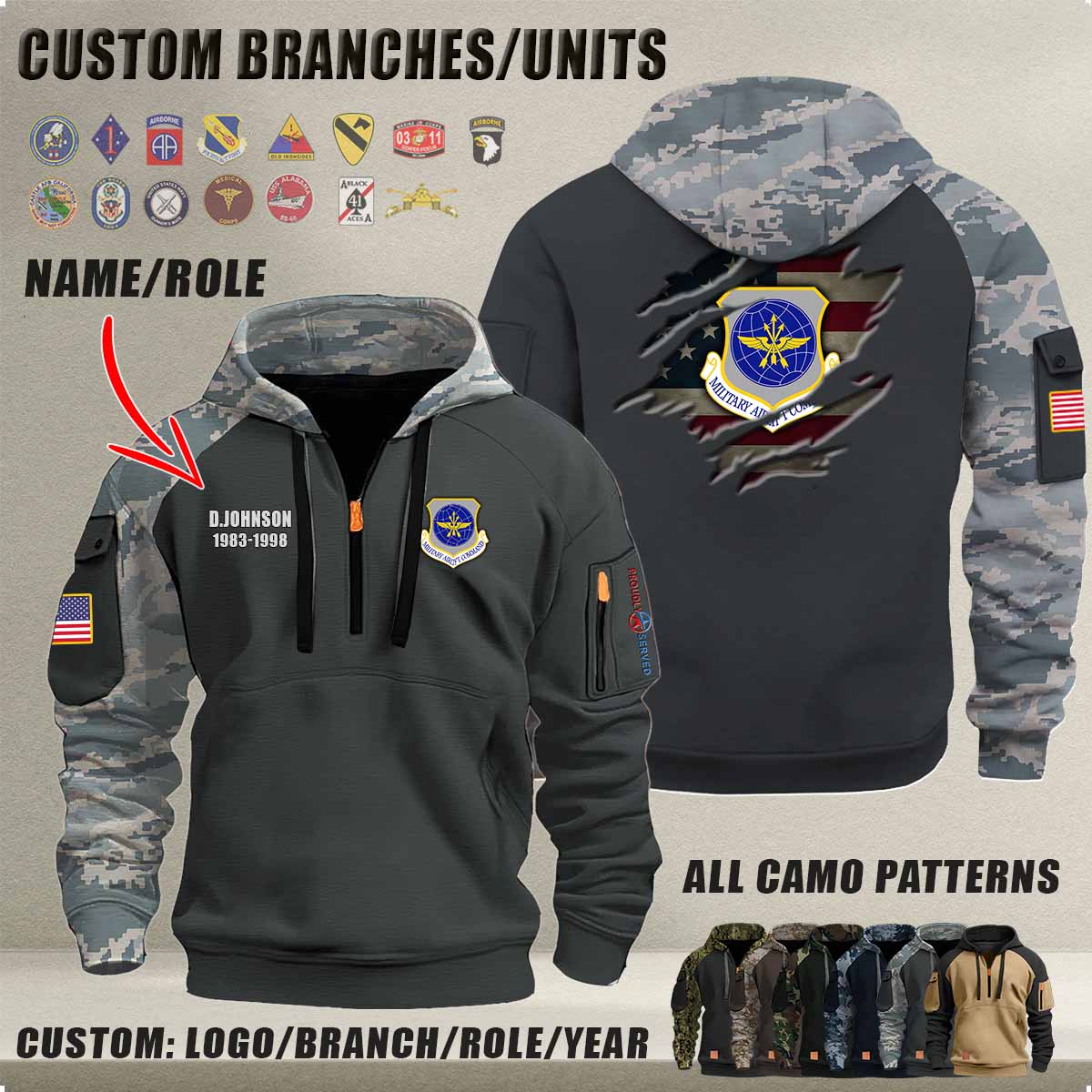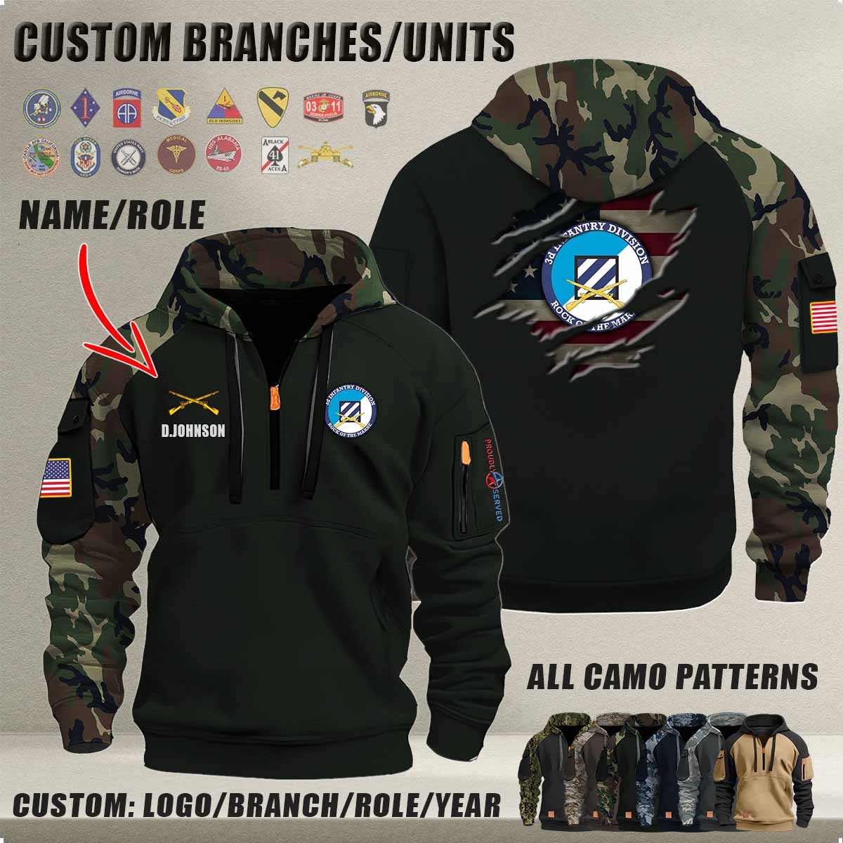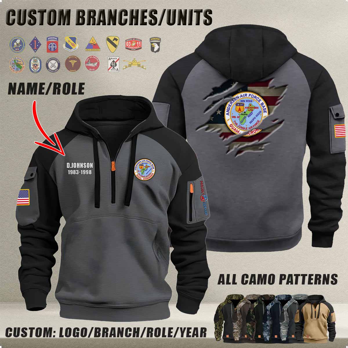 Personalized US Military Halfzip Hoodie-THK119013