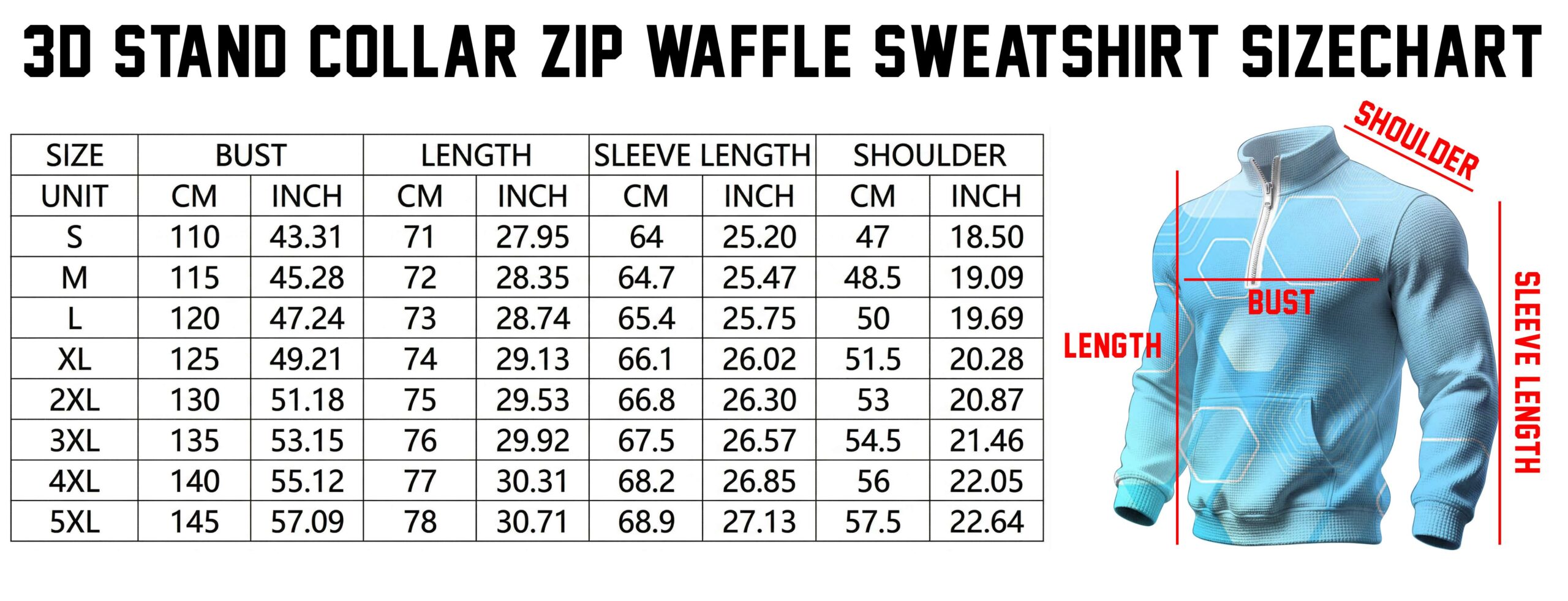- Modern half-zip Sweatshirt design combined with a standout 3D waffle texture, creating a youthful and stylish look. The clean, well-fitted silhouette is easy to style and suitable for school, work, or everyday casual wear.