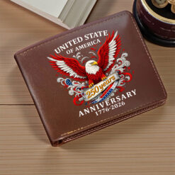 - This item: Personalized America 250th Anniversary Leather Wallet Original price was: $39.99.$29.99Current price is: $29.99.
