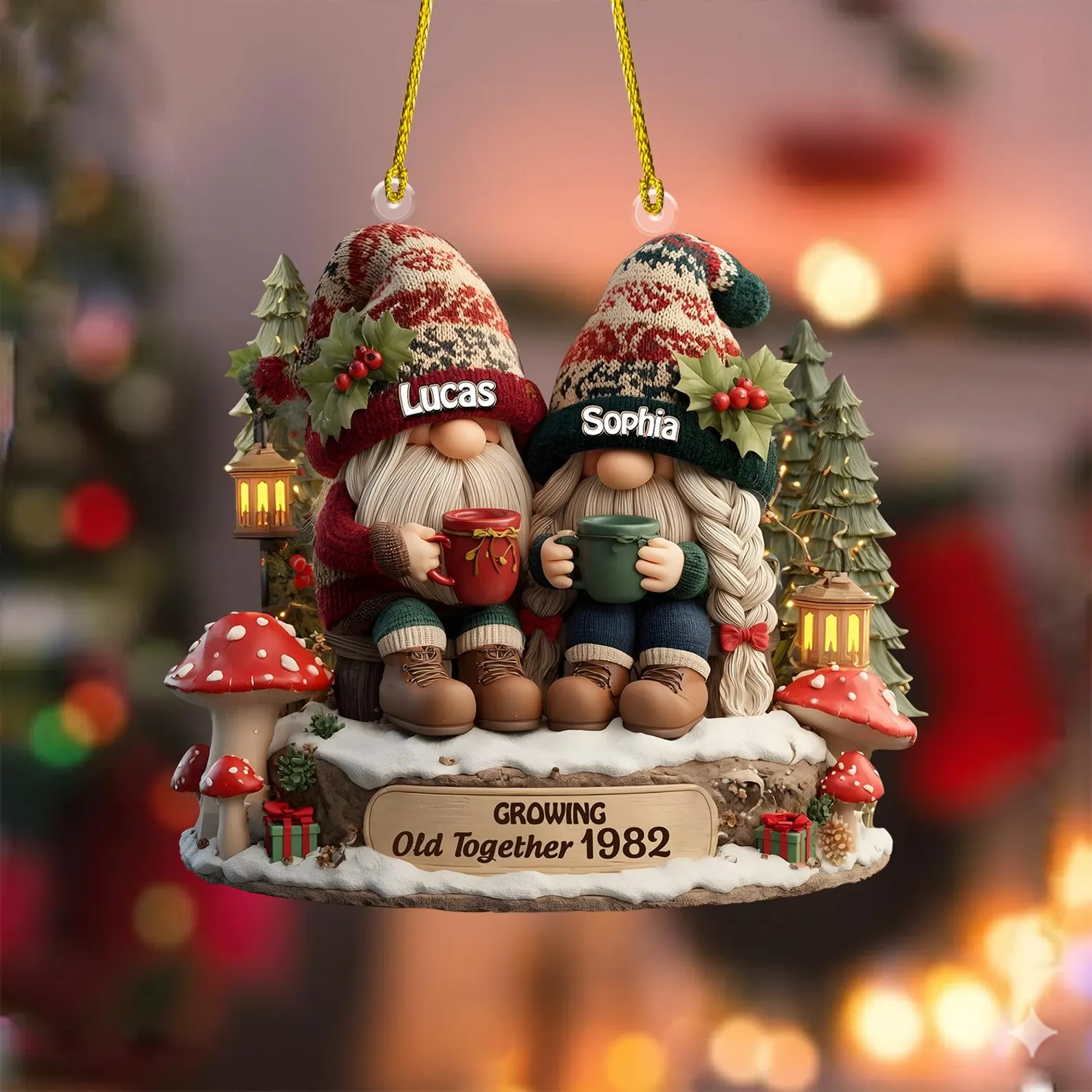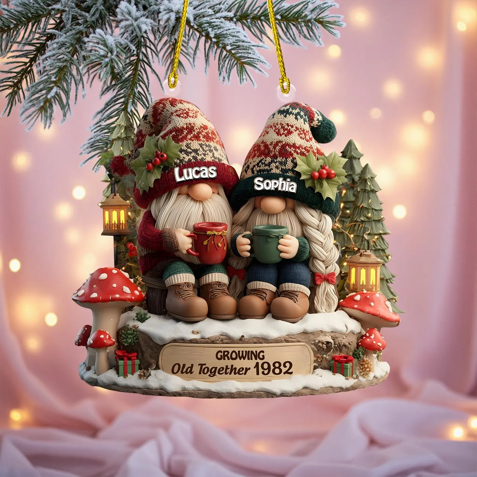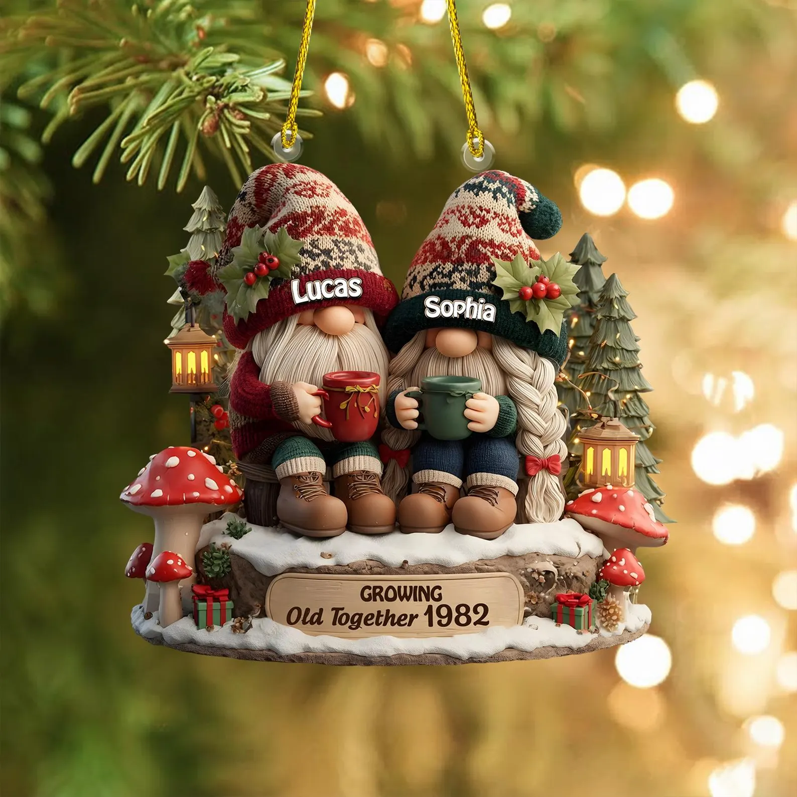 Personalized Going Old Together Gnome Couple Christmas Ornament