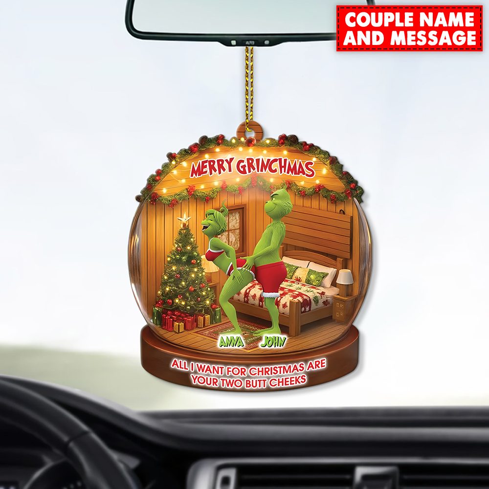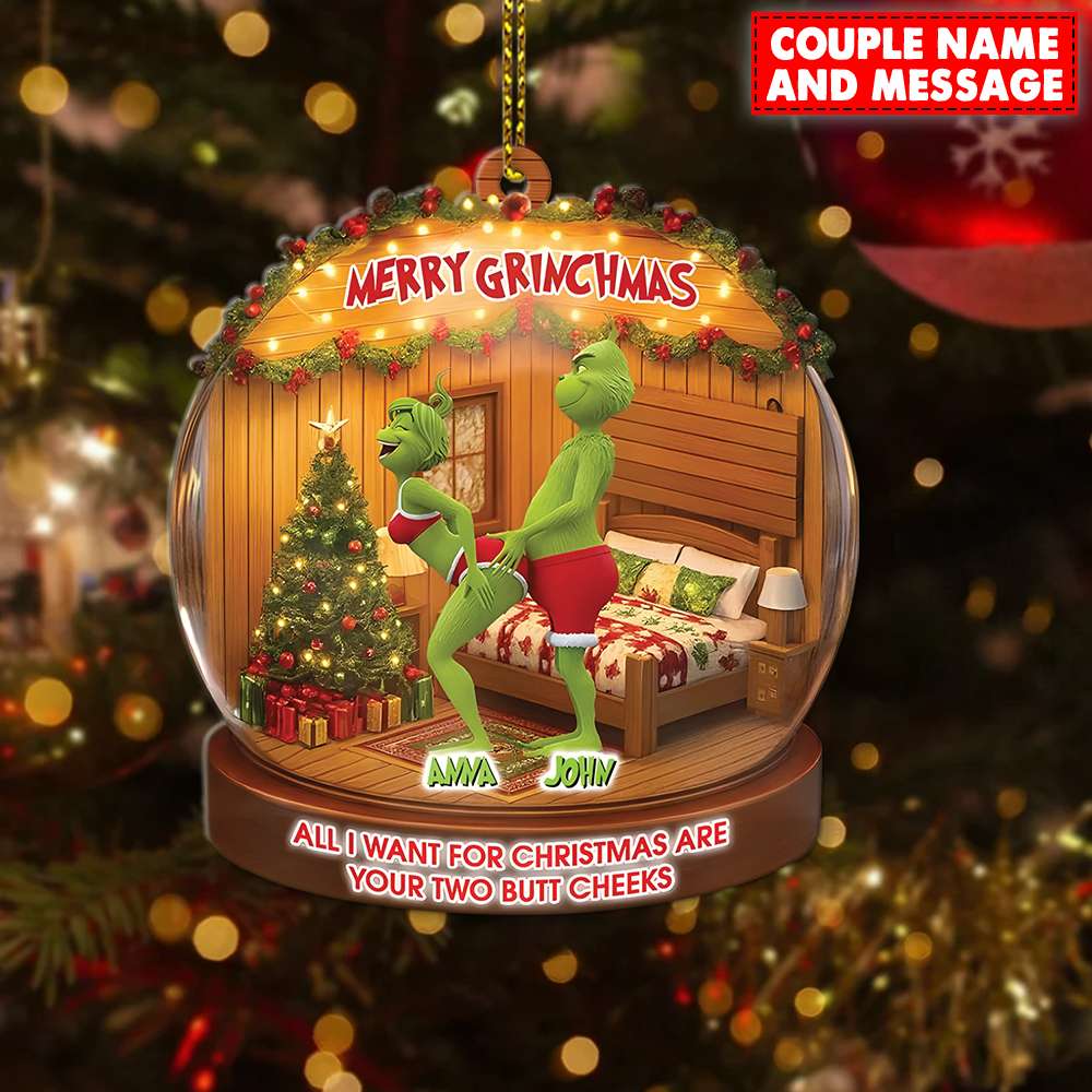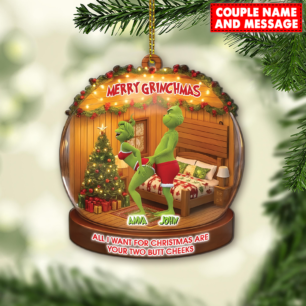 Personalized Green Monster Couple All I Want For Christmas Are Your Two Bt Cheeks Christmas Ornament