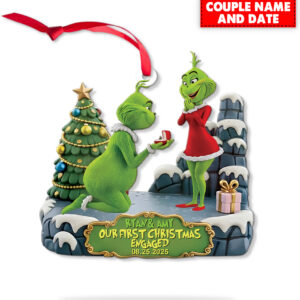 Personalized Green Monster Couple Our First Christmas Engaged Christmas Ornament