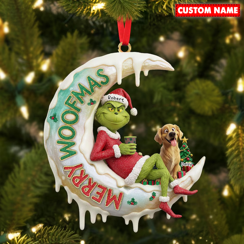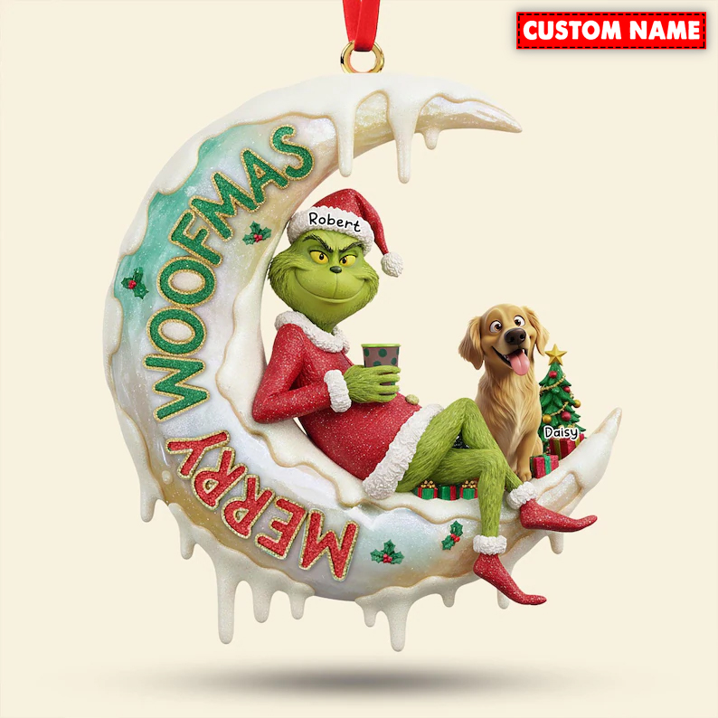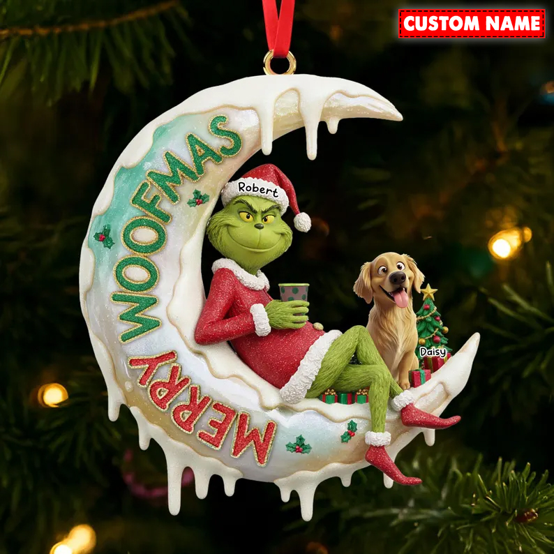 Personalized Merry Woofmas Green Monster Christmas Ornament