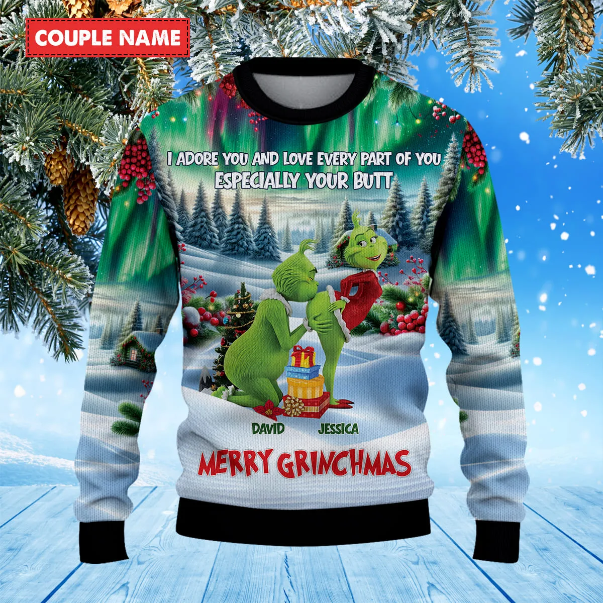 This Personalized Naughty Grinchmas Green Monster Grinch Couple Christmas Knitted Sweater makes a perfect gift for fans!