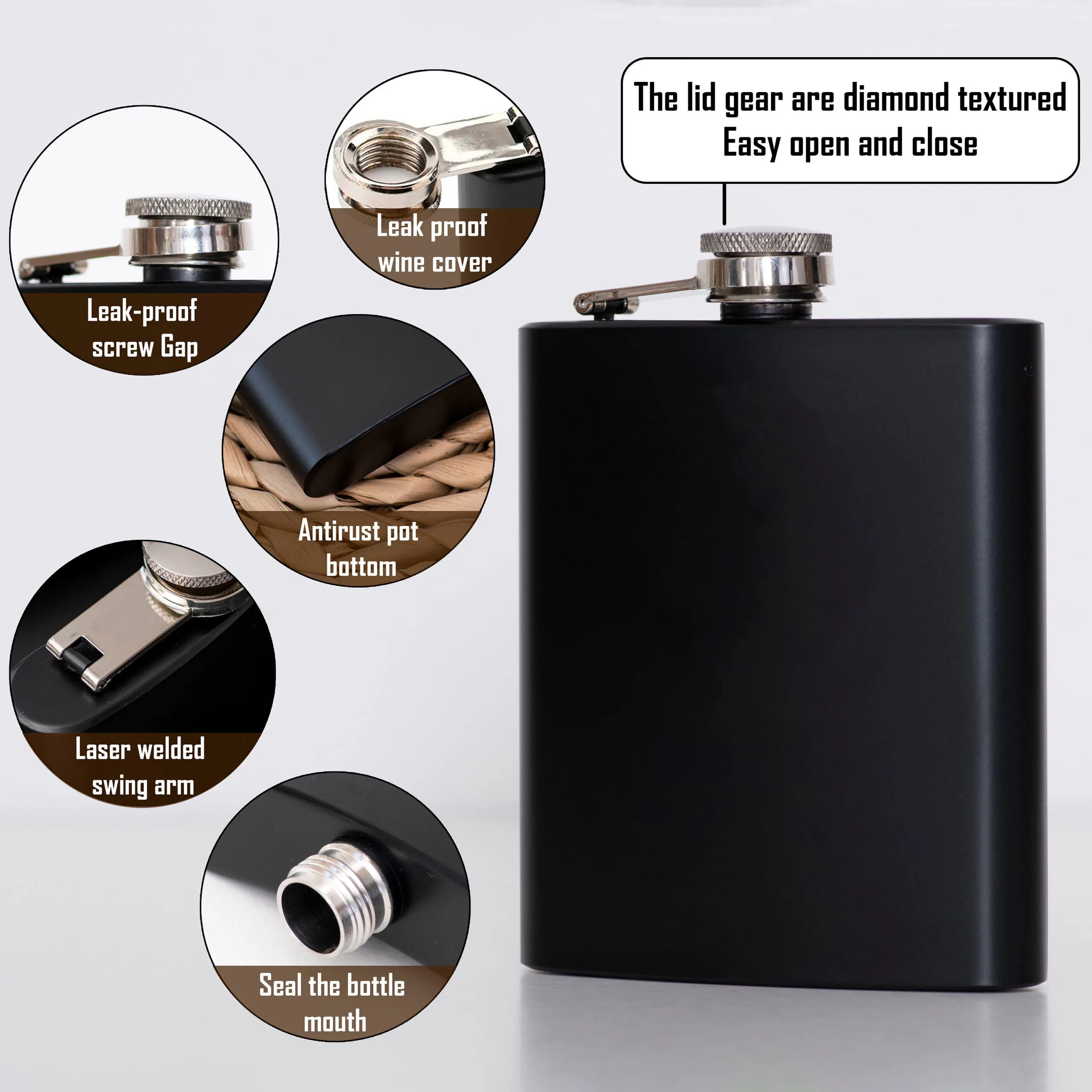 Smooth surface design makes the liquor flask comfortable to hold and prevents injury in case of an accident.