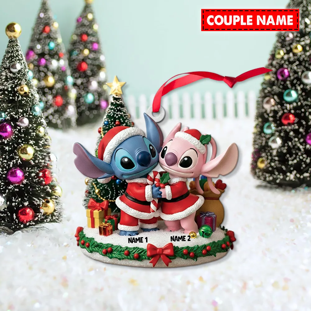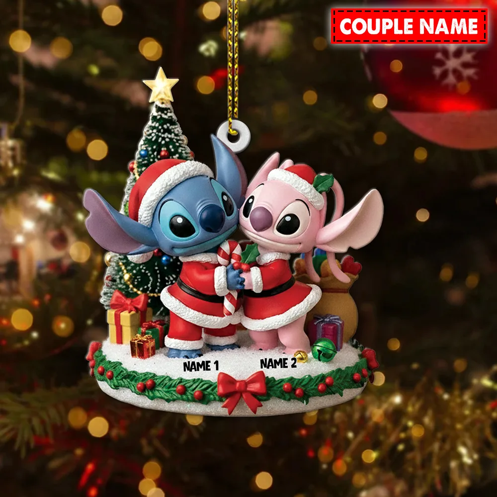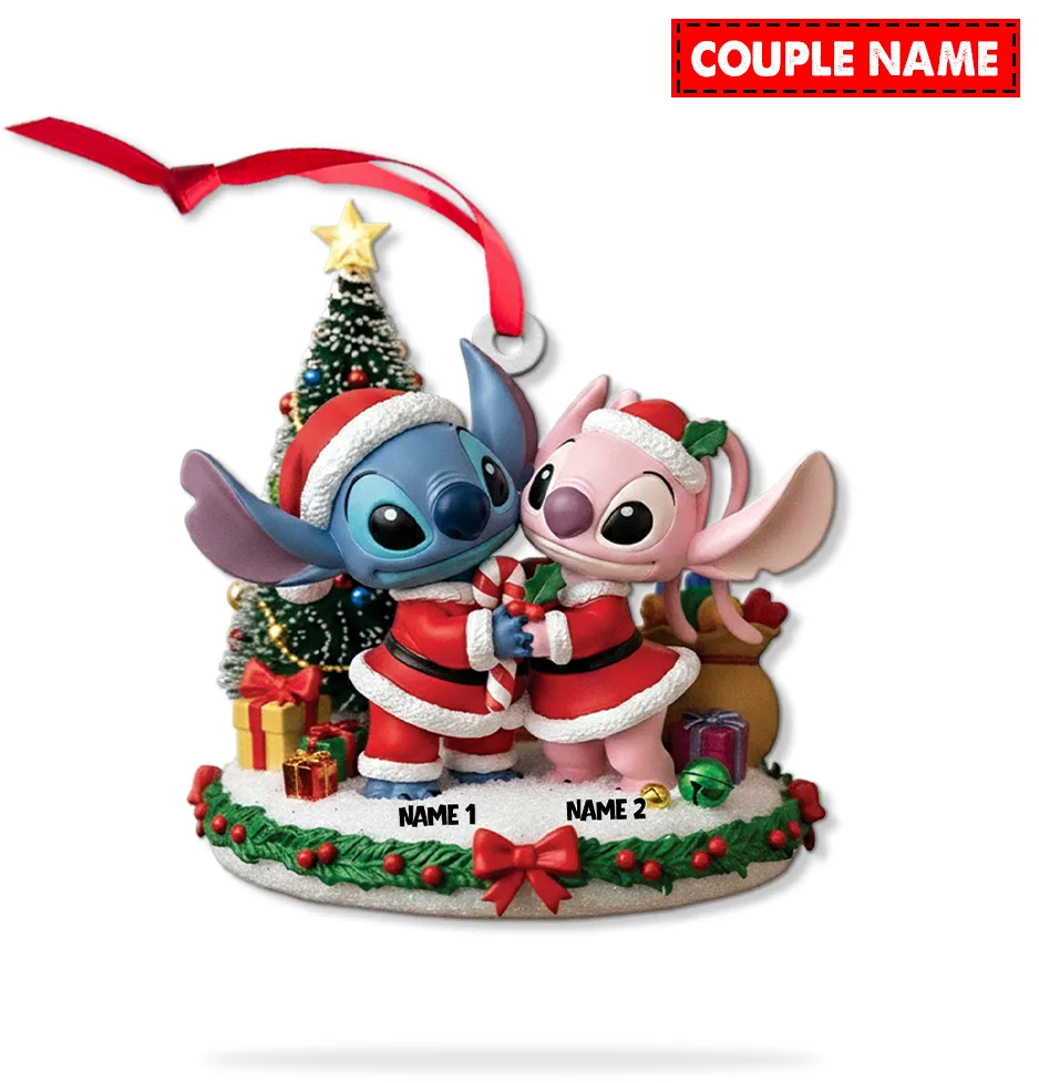 Personalized Stitch And Angel Couple Christmas Ornament