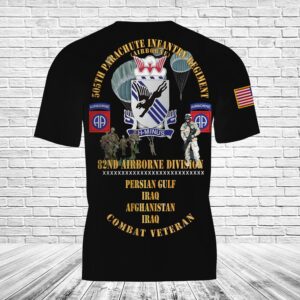 This Personalized US Army Combat Vet 505th PIR 82nd Airborne w Campaigns Soldiers 3D Shirt will make a perfect gift for Veteran.