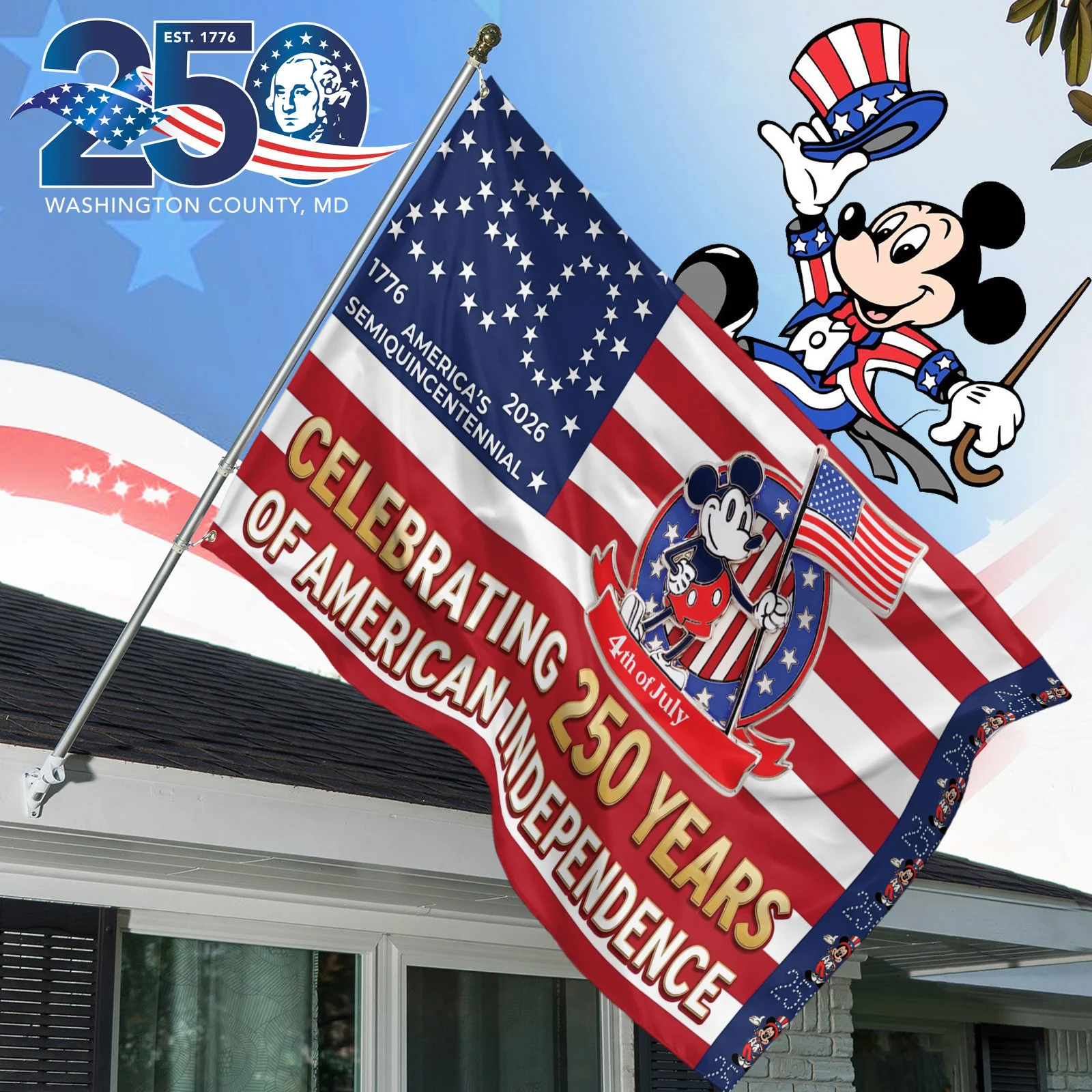 Premium Mickey 250 Years of Freedom House Flag !