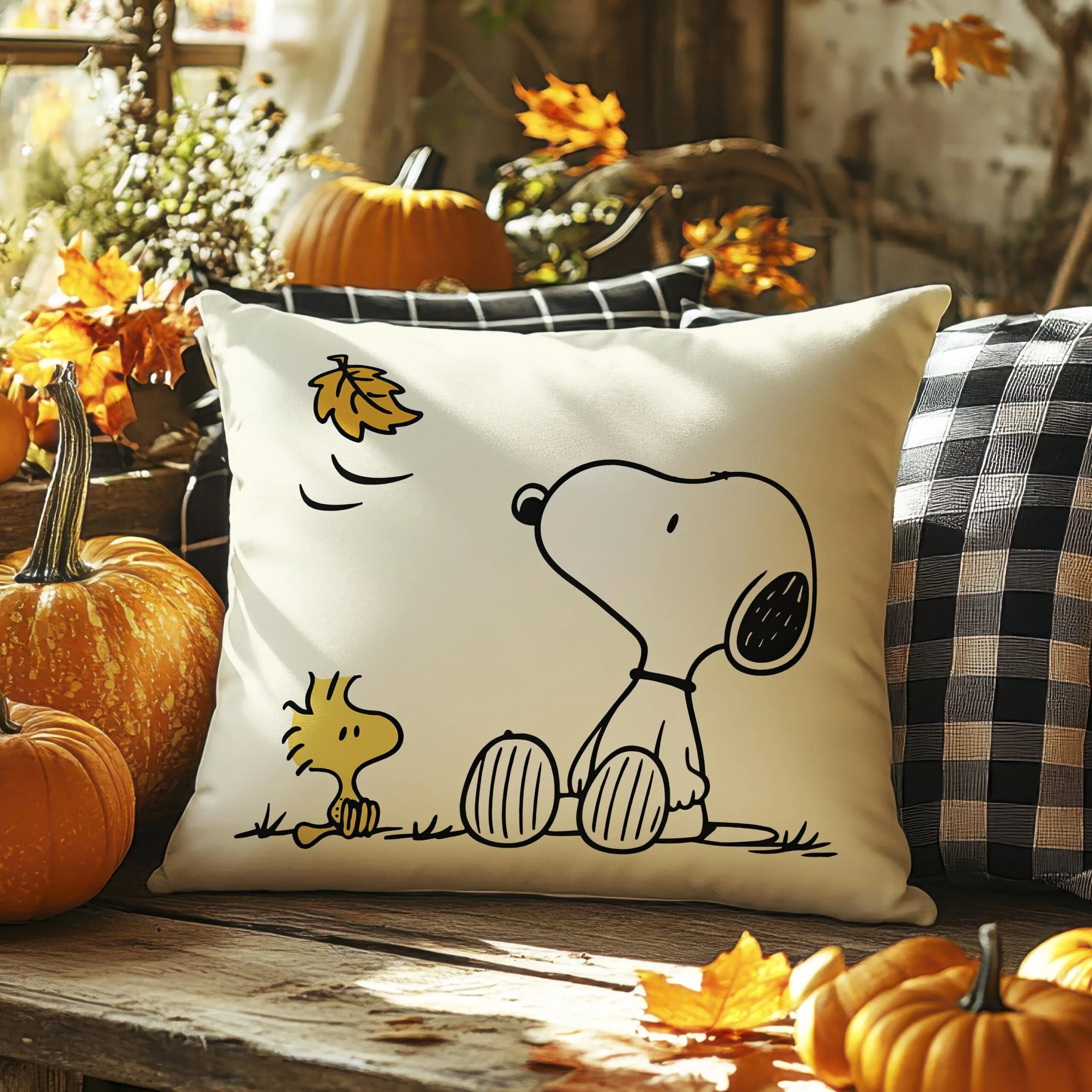Snoopy & Woodstock Autumn Pillow