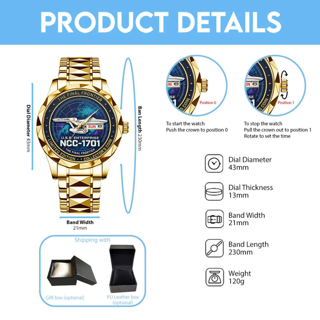 This Luxury Quartz Watch makes a perfect gift for Star Trek fans.