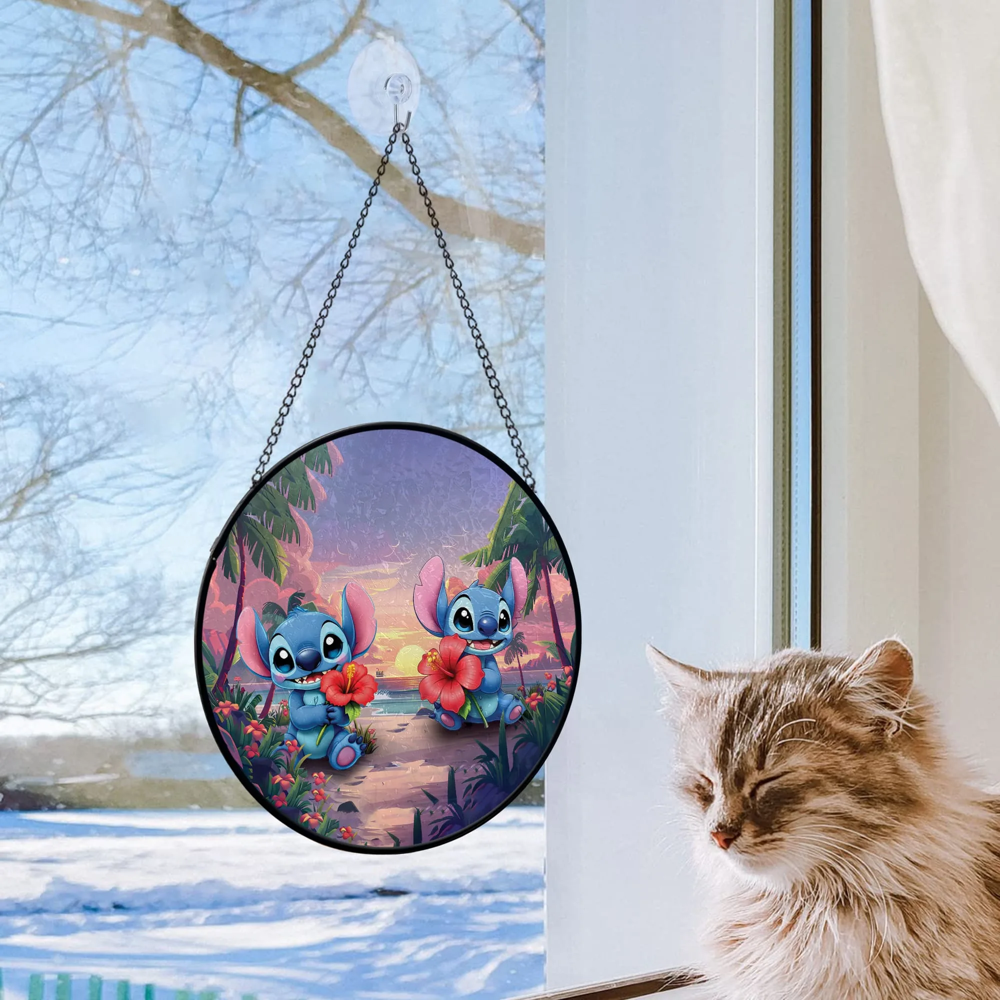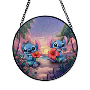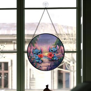 Add a touch of magic to your window with this beautiful Stitch suncatcher! Featuring a vibrant stained glass design with flowers and your favorite alien, it catches the sunlight beautifully for a colorful, heartwarming display.