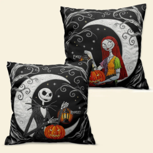 Bring Halloween Town to your home with this charming 2-piece pillow set featuring Jack Skellington and Sally! Perfect for fans of Tim Burton’s classic film, these soft, decorative pillows add a spooky-cute touch to your couch, bed, or collection.
