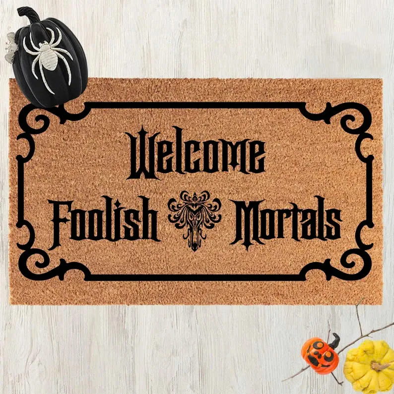 🚪 Welcome guests (and ward off unwanted visitors) with a spooky twist! This doormat sets the perfect tone for any horror fan. Featuring the chilling phrase “Welcome Foolish Mortals – Haunted Mansion Doormat,” it adds an eerie, yet welcoming vibe to your doorstep — perfect for those who love a good scare.